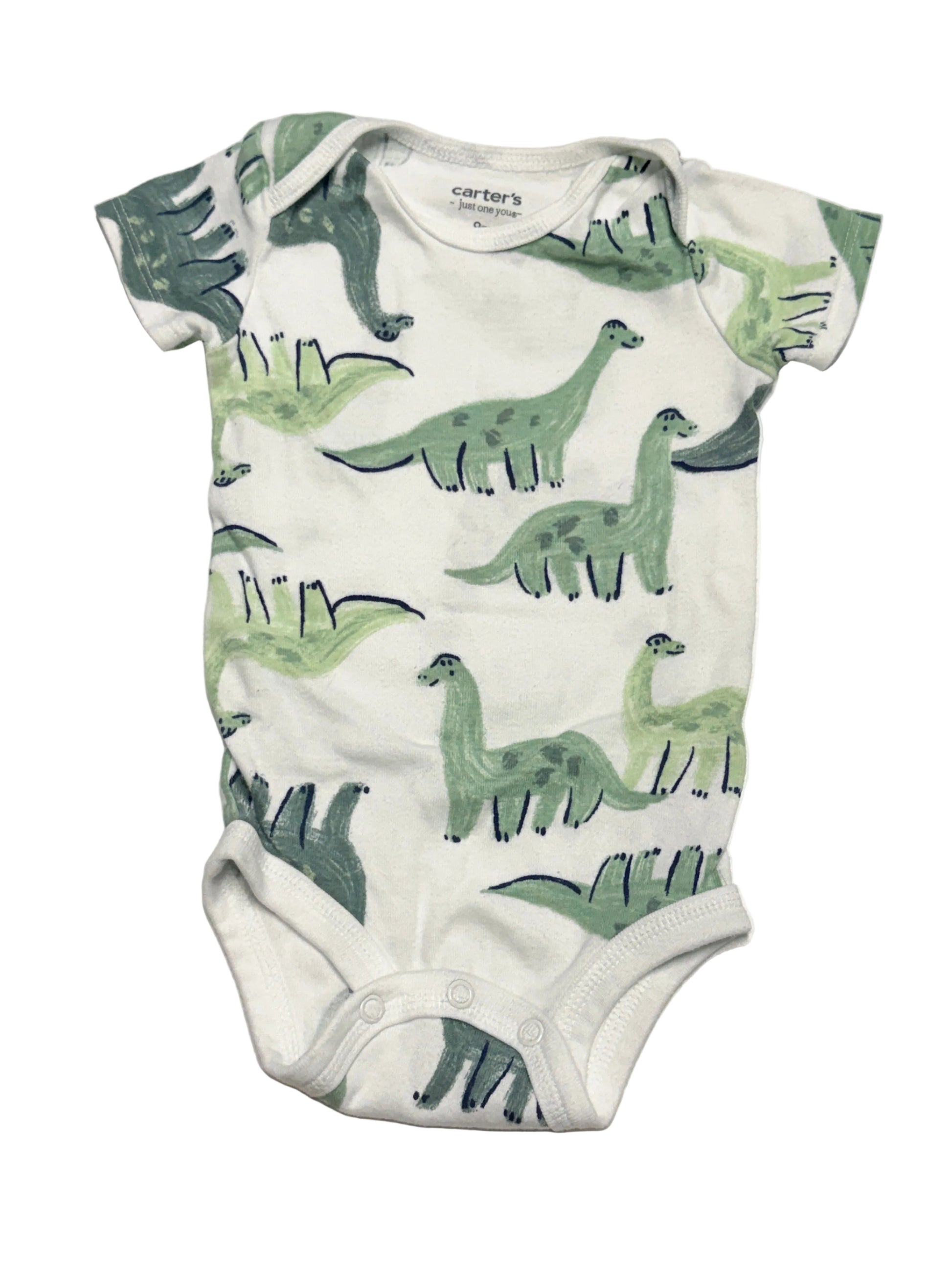 Rawr but make it cute. This adorable Carter’s “Just One You” bodysuit features an all over green dinosaur print on a soft white base. Easy everyday piece for your little dino lover.