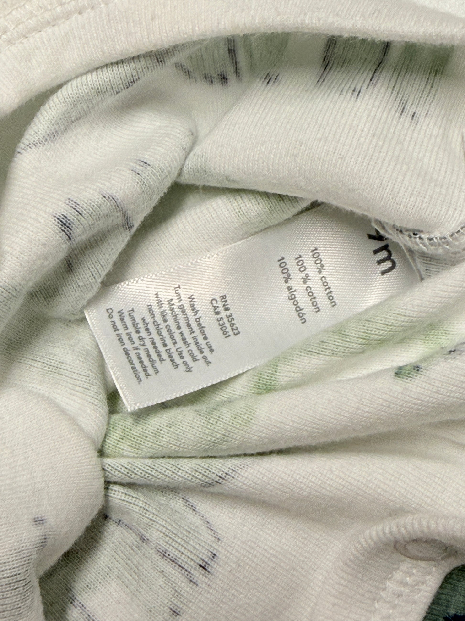 Color: White with green dinosaur print